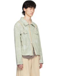 Garment-dyed non-stretch denim jacket. Fading throughout. · Spread collar · Two-way zip closure · Flap pockets · Welt pockets · Two-way zip expansion panel at shoulders extends to back · Single-button barrel cuffs · Adjustable button tabs at back hem Supplier color: Beige garment dye