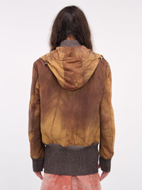 CHARLIE CONSTANTINOU jacket in yellow, paneled construction, hand-dyed, all-over zip detailing, ribbed stand collar, front exposed two-way zip closure, signature zip pulls, shoulder snap-button fastening, long sleeves, rib-knit cuffs & hem, thumbholes, straight hem, relaxed fit. Standard Sizing Model is 5'11.5" wearing size M. Shoulders: 18" Chest: 36" Waist: 30"