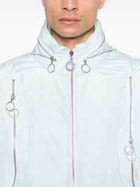 multi-pocket padded jacket Highlights - Light powder blue - Padded design - Multiple zip-fastening pockets - Lightweight construction - Front two-way zip fastening - Slouchy drawstring hood - Throat latch - Stand-up collar - Long sleeves - Drawstring cuffs - Rear drawstring band - Full lining - Straight hem Made in United Kingdom Composition Nylon 100%, Merino 60%, Viscose 30%, Polyester 10% SIZE & FIT Model measurements Height 6 ft 1 in(1.85 m) Bust/Chest 35.82 in(91 cm) Hips 37.79 in(96 cm) Waist 29.13 in(74 cm) FittingInformation Designed for a relaxed fit, this piece allows for comfort and movement when worn The adjustable drawstring means that you can adjust this piece’s fit to suit your comfort and preference Made from a padded non-stretch fabric, giving it no natural elasticity