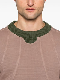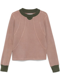 panelled waffle sweatshirt Highlights - Tobacco brown/forest green - Cotton - Waffle texture-effect - Panelled design - Ribbed trim - Crew neck - Raised seam detail - Long sleeves - Straight hem Made in United Kingdom Composition Cotton 100%, Merino 60%, Viscose 30%, Polyester 10% SIZE & FIT Model measurements Height 6 ft 2 in(1.87 m) Bust/Chest 37.79 in(96 cm) Hips 37.79 in(96 cm) Waist 30.31 in(77 cm) FittingInformation Designed for a relaxed fit, this piece allows for comfort and movement when worn Made from a midweight non-stretch fabric, this piece offers minimal elasticity when worn