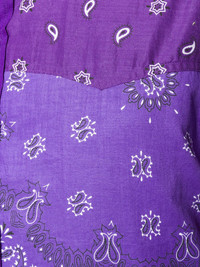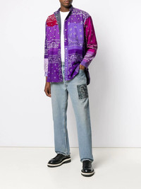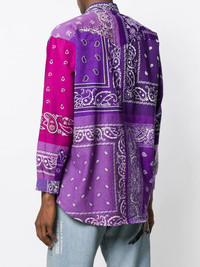 bandana print shirt Purple cotton bandana print shirt from Children of the Discordance featuring long sleeves, a press stud fastening, a band collar and a bandana print. Imported Composition Outer: Cotton 100% Lining: Polyester 100% SIZE & FIT Model measurements Height 6 ft 2 in(1.88 m) Bust/Chest 36.61 in(93 cm) Hips 35.82 in(91 cm) Waist 27.95 in(71 cm) Measurement CHEST 51.18 in(130 cm) SLEEVE LENGTH 22.83 in(58 cm) Shoulder Width 22.44 in(57 cm) WAIST 51.18 in(130 cm) Washing instructions Hand Wash