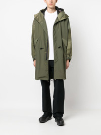 drawstring-hood parka coat khaki cotton drawstring hood concealed front fastening long sleeves mid-length Imported Composition Outer: Nylon 100%, Cotton 100% Lining: Polyester 100% SIZE & FIT Model measurements Height 6 ft 2 in(1.87 m) Bust/Chest 36.41 in(92.5 cm) Hips 35.43 in(90 cm) Waist 29.52 in(75 cm) FittingInformation This piece fits true to size. We recommend you get your regular size Cut for a loose fit Made with a mid-weight non-stretch fabric Washing instructions Hand Wash