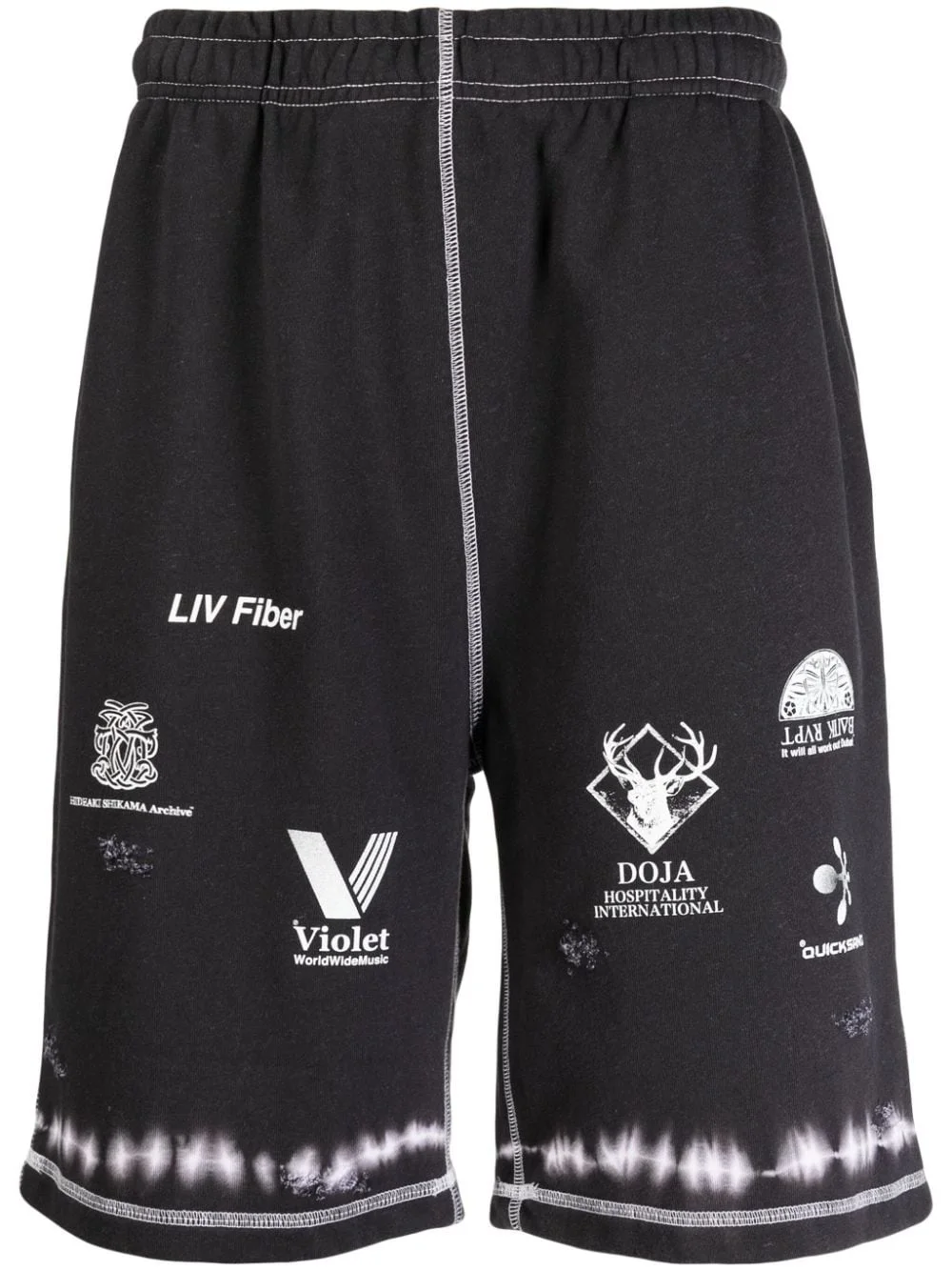 graphic-print elasticated-waistband shorts Highlights - Dark grey - Cotton blend - All-over graphic print - Tie-dye print - Elasticated waistband - Two side slit pockets - Rear patch pocket - Knee-length Imported Composition Cotton 52%, Polyester 48% SIZE & FIT Model measurements Height 6 ft 2 in(1.88 m) Bust/Chest 31.88 in(81 cm) Hips 35.82 in(91 cm) Waist 27.55 in(70 cm) FittingInformation Designed for a straight-leg fit, offering an unrestricted and comfortable fit over the leg The elasticated waist allows for a comfortable fit Made from a midweight non-stretch fabric, this piece offers minimal elasticity when worn This piece fits true to size – take your usual size Washing instructions Hand Wash