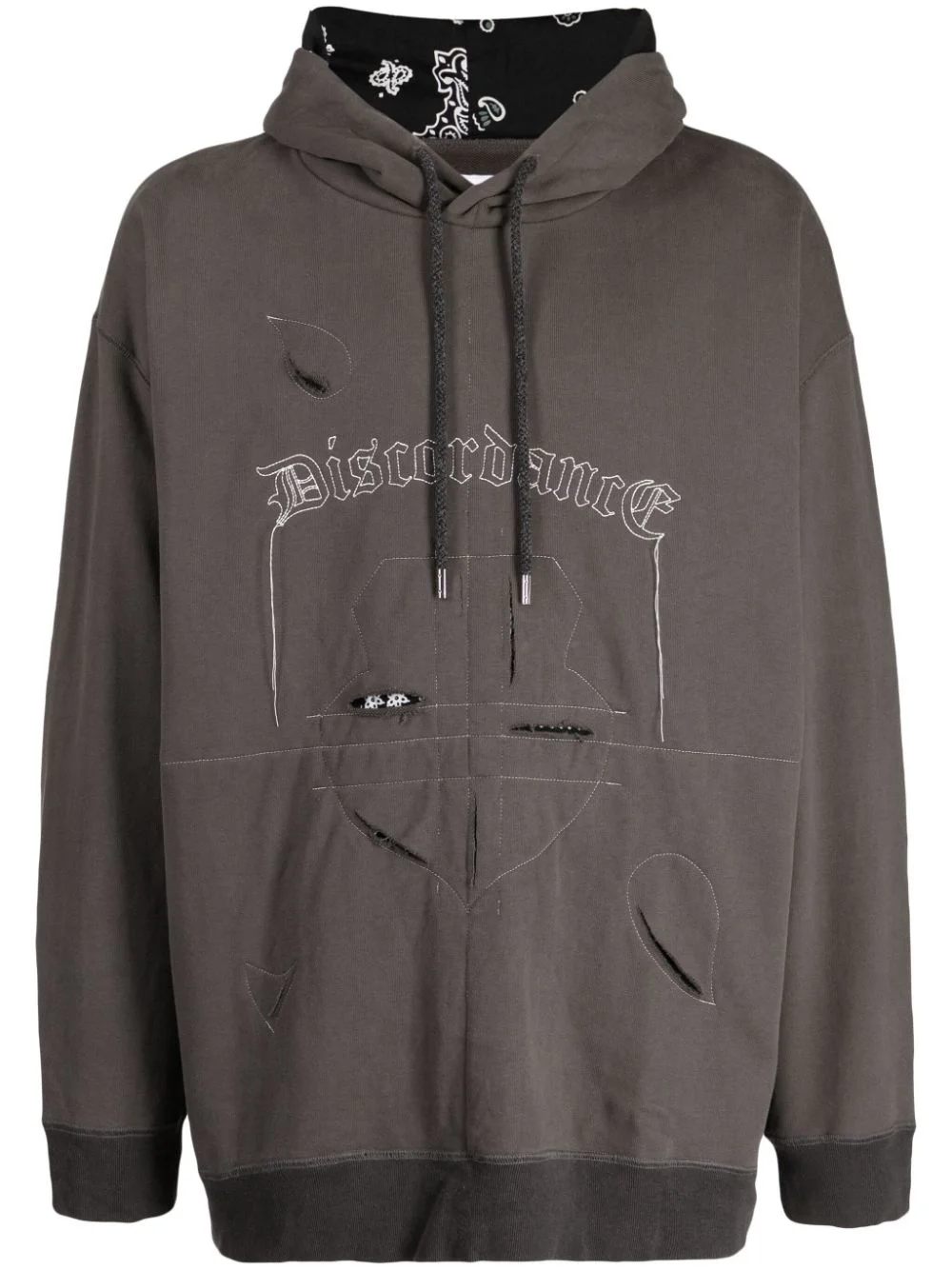 logo-embroidered cotton hoodie Highlights - Grey - Cotton - Embroidered logo to the front - Distressed finish - Ripped detailing - Drawstring hood - Drop shoulder - Long sleeves - Ribbed cuffs and hem Imported Composition Body: Cotton 100% Lining: Cotton 100% Washing instructions Hand Wash