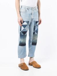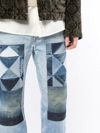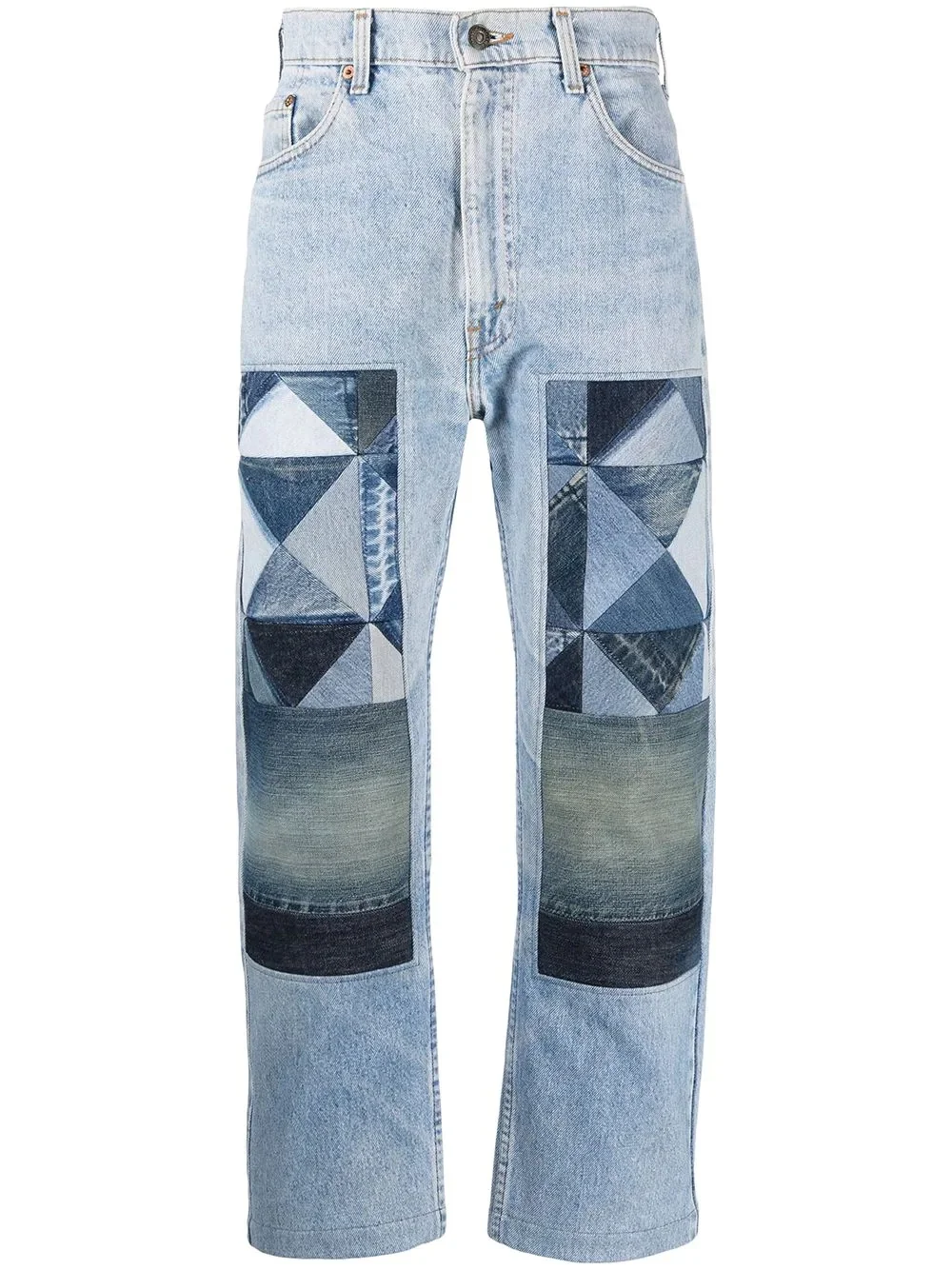 NY Old Patch jeans light blue cotton bleach wash logo patch to the rear patchwork detailing belt loops front button and zip fastening classic five pockets Imported Composition Cotton 100% SIZE & FIT Model measurements Height 6 ft 1 in(1.85 m) Bust/Chest 40.15 in(102 cm) Hips 37.79 in(96 cm) Waist 29.52 in(75 cm) FittingInformation This piece fits true to size. We recommend you get your regular size Designed for a slim fit at the waist and loose over the leg Made with a mid-weight fabric Washing instructions Hand Wash