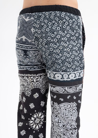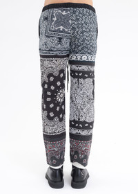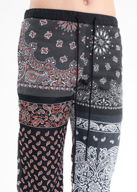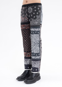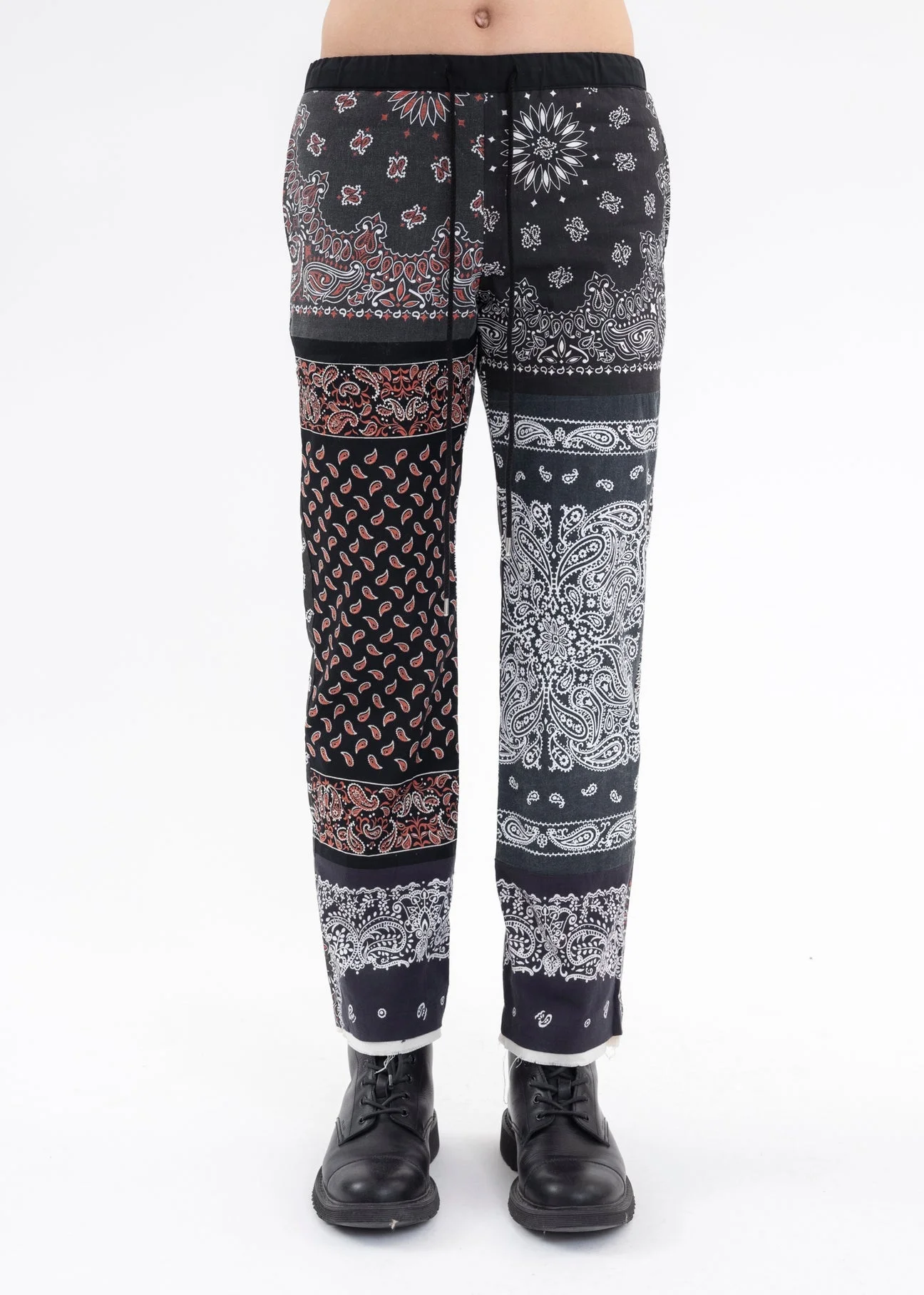Multicoloured lightweight paisley bandana patchwork trousers. Features a paneled construction, elasticized waistband with tonal drawstrings, and tonal stitching throughout. Finished with pockets at either hip. Relaxed Fit Shell: 100% Cotton Lining: 100% Cotton Imported Model is wearing size 1 Model is 6’ (183 cm), 125 pounds (56 kg), usually wears M in tops. A size 29 in denim and 46 in trousers. Size 10 in shoes. *FINAL SALE*
