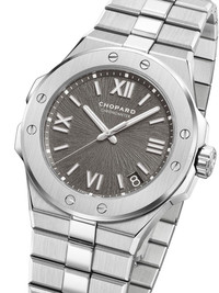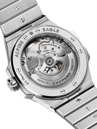 Alpine Eagle 41mm Founded in 1860 in Switzerland, Chopard is renowned for its refined timepieces. Inspired by Karl-Friedrich Scheufele's passion for the Alps and the power of the eagles that can be found there, the Alpine Eagle model is a modern reinterpretation of the emblematic St. Moritz - first seen in 1980 and the first watch ever created by the brand's co-president. Powered by precise mechanical movement, this 41mm model is constructed from durable Lucent steel and finished with a blue-hued guilloché dial. Highlights - 41mm - Charcoal grey - Lucent steel - Round face - Roman numeral dial - Baton hands - Date indication - Screw-down crown - Adjustable link bracelet - Folding clasp - Automatic movement - Water resistance up to 100m/10 atm - This item comes with a standard two-year warranty from the brand. - This item is crafted using fairmined certified gold, ensuring that artisanal and small scale mining organisations meet high standards for social development and environmental protection. - Learn more about what makes a product conscious on our conscious criteria page Imported Composition Stainless Steel 100% SIZE & FIT Measurement Case size 1.6 in(41 mm)