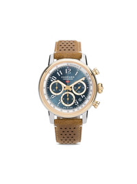 Mille Miglia Classic 40.5mm Highlights - 40.5 mm - Gold-tone - 18kt recycled gold - Lacquered finish - Arabic dial - Round face - Baton hands - Screw-down crown - Stainless steel case - Sapphire-crystal case back - Perforated brown leather strap - Pin-buckle fastening - Mechanical movement - Water resistance up to 50m/5 atm - Chronograph counters - This item comes with a standard one-year warranty from the boutique. Imported Composition Sapphire Crystal 100%, Leather 100%, stainless steel 80%, 18kt Recycled Yellow Gold 20% SIZE & FIT Model measurements Height 6 ft 1 in(1.86 m) Bust/Chest 37 in(94 cm) Hips 37 in(94 cm) Waist 29.13 in(74 cm) Measurement Case size 1.57 in(40 mm) Case thickness 0.59 in(15 mm) Maximum strap length 9.05 in(23 cm) Minimum strap length 7.08 in(18 cm) Strap width 0.59 in(15 mm)