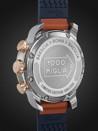 Chopard calls the 'Mille Miglia' "the most beautiful course in the world" - it was established in 1927 and follows a route through Italy from Brescia to Rome and back. A tribute to the world-class event, this limited-edition stainless steel reference is designed to look like a race car dashboard, complete with a trio of counters, red accents and an arrow-shaped frame surrounding the date window. It's powered by an automatic chronograph movement and fitted on a leather strap that's perforated like driving gloves. We offer a two-year warranty for all working parts and manufacturing faults for luxury watches. For more information, contact one of our experts by emailing watches@mrporter.com Details & Care Movement - Swiss-made calibre Valjoux 7750 automatic chronograph movement with 48-hour power reserve - 25 jewels, 28,800 Vph Functions - Hour, minute and small second hands - Date window - Chronograph: 60-seconds, 30-minute and 12-hour counters - Tachymeter scale Dial - Galvanised white circular satin-brushed dial - Super-LumiNova® hands and indices Case - Stainless steel case - Crown for date and time adjustments and manual winding - Sapphire glass crystal - Engraved case back - Folding clasp-fastening brown perforated leather strap (Calf) Specifications - Case diameter: 44mm; case thickness: 13.79mm - COSC-certified chronometer - Water resistance: 10 bar - Comes in a presentation box - Limited to 250 pieces - Reference number: 168571-6004
