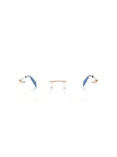 rectangle-frame glasses Highlights - Gold-tone - Metal - Rectangle frame - Rimless lenses - Clear lenses - Engraved logo to the bridge - Nose pads - Logo-engraved arm - Cut-out detailing to the arm - Straight arms with curved tips - These glasses come with a protective case. - All glasses from farfetch are sold as non-prescription frames. Made in Italy Composition Metal 100% SIZE & FIT Measurement Arm Length 5.7 in(14.5 cm) Bridge Width 0.66 in(1.7 cm) Lens Diameter 2.28 in(5.8 cm) Total Width 5.7 in(14.5 cm)