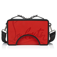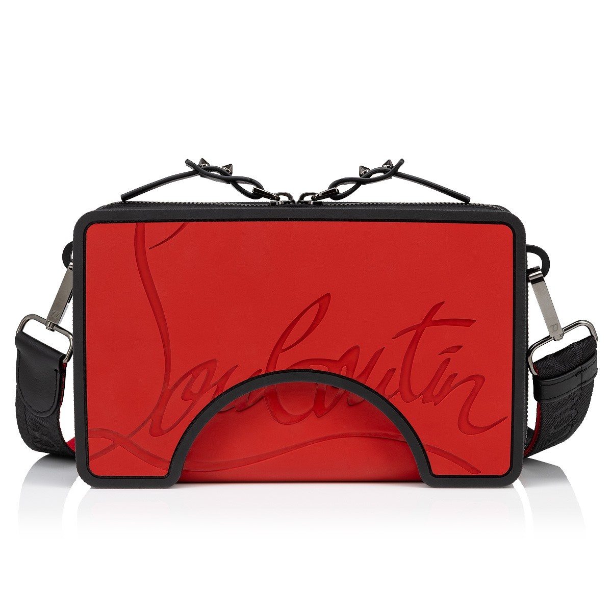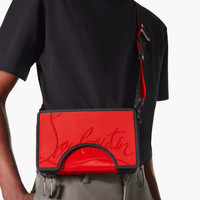 The innovative Adolon messenger bag showcases Maison Christian Louboutin's creativity. It is entirely crafted in black calf leather and red rubber adorned with the creator's signature. - An adjustable (31.5 to 57 inches/ 80 to 145 cm), detachable strap allows it to be carried over the shoulder or by hand - Zip fastening - 1 flat pocket - Dimensions: H 9 x L 5.6 x W 2.5 inches H 14.2 x L 23 x W 6.5 cm Product information Material: Calf leather Color: Black Reference: 3235044M315 Dimensions: 5.6 x 9.1 x 2.6 inches Collection: Fall Winter 23