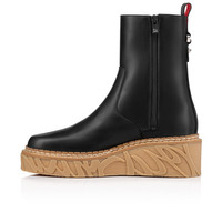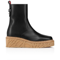 A modern design, the Aeroboot is set on a thick rubber sole embossed with the designer's signature. This refined shoe is entirely crafted in black waxed calf leather. The heel is adorned embellished with Maison Christian Louboutin's signature metal spikes. Product information Reference: 1250795BK01 Color: Black Material: Waxed calf leather