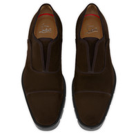 Maison Christian Louboutin's Alpha Lion is a timeless slip-on Oxford shoe showcasing a retro design and featuring an almond toe slightly squared. Set on a 40 mm lug sole, offering a glimpse of iconic Loubi red with every step, this shoe is a nod to contemporary city life. It is crafted from Cafe brown crosta calf leather for a sophisticated look. Product information Reference: 12601087164 Color: Cafe Material: Reversed calf leather