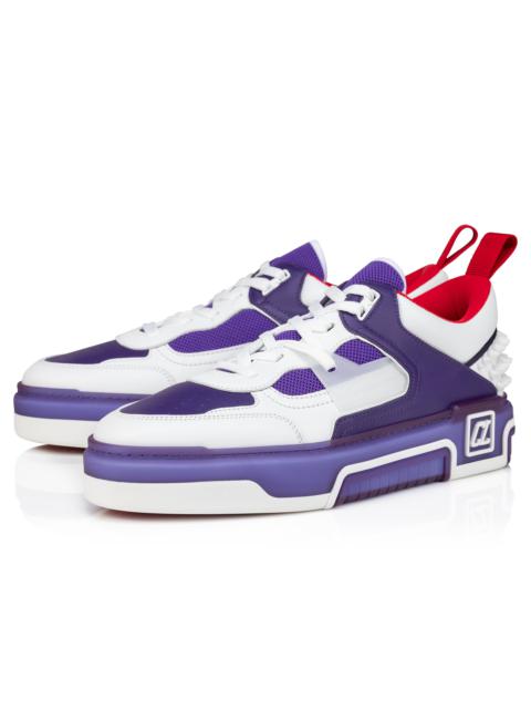 Showcasing an array of Maison Christian Louboutin signature details, the Astroloubi is inspired by the basketball sneakers of the 90s. This sophisticated style blends white calf leather with Jacaranda purple nappa leather. A lightweight, sporty design, this model is finished with a Loubi red heel tab. It features spikes at the back and a CL varsity monogram on the side. Product information Material: Calf leather Color: Jacaranda Reference: 32400206259 Collection: Fall Winter 24