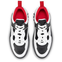 Showcasing an array of Maison Christian Louboutin signature details, the Astroloubi is inspired by the basketball sneakers of the 90s. This sophisticated style blends white calf leather with black nappa leather. A lightweight, sporty design, this model is finished with a Loubi red heel tab. It features spikes at the back and a CL varsity monogram on the side. Product information Material: Calf leather Color: Black Reference: 3240020WH51 Collection: Fall Winter 24