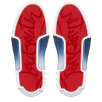 Showcasing an array of Maison Christian Louboutin signature details, the Astroloubi is inspired by the basketball sneakers of the 90s. This sophisticated style combines laminated leather, blue and white grosgrain ribbon. A lightweight, sporty design, this model also has a heel tab making it easy to slip on. This on-trend model in playful, retro colors features spikes at the back and a CL varsity monogram on the side. Made for every day wear, this pair has a cushion footbed, providing additional cushioning to your feet. Thanks to Strobel stitching, your shoes become flexible and ultra-soft. Product information Reference: 32408516607 Color: Denim Material: Cotton