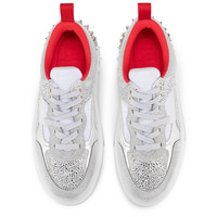 Inspired by the world of basketball in the 90s, the Astroloubi Strass sneaker sits on a rubber sole. This silver model is adorned with strass and blends glitter leather with metallic suede and laminated nappa leather. It features a CL monogram on the side, an iconic red heel tab and signature metallic Maison Christian Louboutin spikes on the heel. Made for every day wear, this pair has a cushion footbed, providing additional cushioning to your feet. Thanks to Strobel stitching, your shoes become flexible and ultra-soft. Product information Reference: 3240024CN1H Color: Silver Material: Calf leather