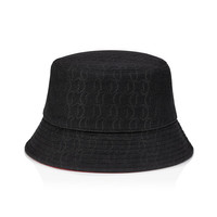 The Bobino hat is part of a new accessories line. It is crafted in cotton jacquard with a contrasting CL monogram. This black bucket hat by Maison Christian Louboutin enchants with its modern style. - Signature red interior - Available in 4 sizes from S to XL Product information Reference: 1245249BK01 Material: Cotton Color: Black Collection: Summer 24