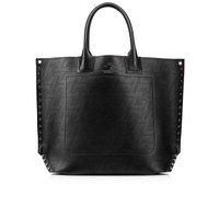 The Cabalou tote is adorned with Maison Christian Louboutin signature spikes on the sides for a contemporary appeal. Crafted in black perforated fabric and adorned with a CL badge, it has metal eyelets for a graphic look. - Two rounded handles for carrying by hand - Large interior compartment lined in iconic Loubi red - Dimensions: H 38 x L 52 x W 18 mm PRODUCT INFORMATION Reference: 1235143T892 Color: Black Material: Calf leather Collection: Summer 23