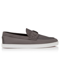 The Chambeliboat boat shoe stands out thanks to its sleek silhouette. An elegant design set on a white rubber sole, crafted from unlined Smoky grey nubuck leather for a more supple feel. This loafer's tongue is trimmed with a silver collar pin, showcasing Maison Christian Louboutin's creative flair. Product information Reference: 3240186I381 Color: Smoky Material: Reversed nubuck leather