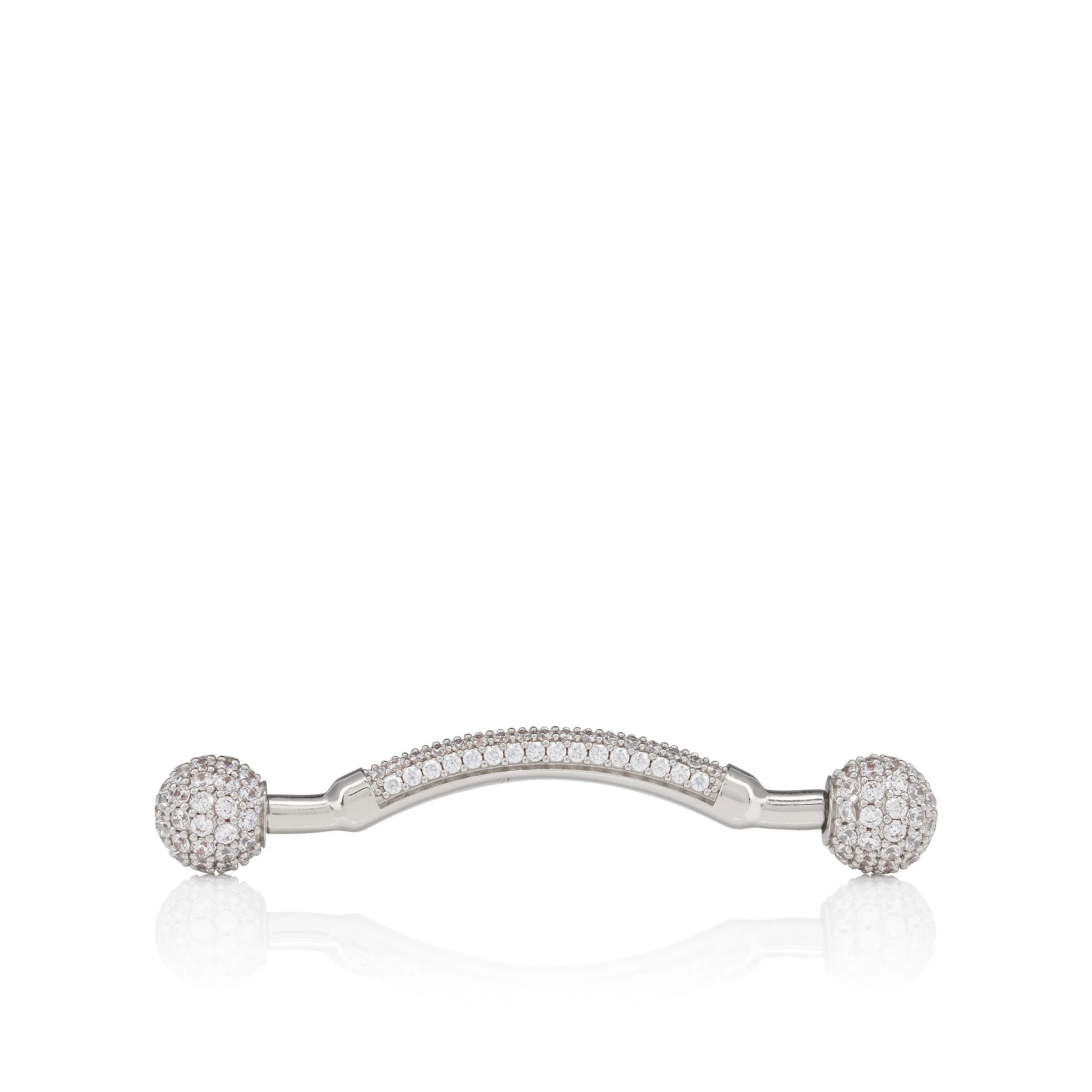 Introducing the ‘Chambelink Strass,’ a dazzling jewelry set entirely covered with hand-set white Crystal rhinestones. Crafted from brass, this collar pin radiates elegance in a modern silver finish, making it the perfect accessory to elevate evening looks, especially during end-of-year celebrations. Each piece is presented in brand-new, high-end packaging that echoes the iconic Maison Christian Louboutin shoe boxes. How to install the ‘Chambelink Strass’ onto the shoe: - Unscrew the two spheres at each end of the ‘Chambelink Strass’ - Position the central bar onto the eyelets designed for this purpose - Once the bar is in place, screw the spheres back on and tighten them The Chambelink Strass is compatible with six of Maison Christian Louboutin’s iconic styles: Chambeliss, Chambeliboot, Chambelimoc, Chambelimonk, and Chambelimonk Boot. Available in sizes S, M, and L, check our size guide to find your perfect fit. Product information Reference: 1255250SV20 Color: Silver Material: Metal Dimensions: 5mm x 0 x 0