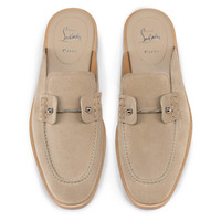 Maison Christian Louboutin's Chambeluss backless mules are a vision of sophistication in a subtle Saharienne beige hue. Crafted from nappa leather, a removable metallic collar pin on the tongue presents understated glamour. The softly curved wide toe, structured outsole and fine top stitching add a touch of opulence to every step. Product information Reference: 3240182F702 Color: Saharienne Material: Calf leather Collection: Fall Winter 24