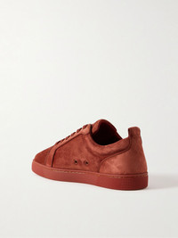 Louis Junior Grosgrain-Trimmed Suede Sneakers Red