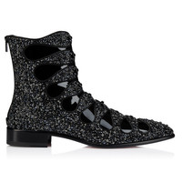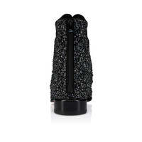 The sophisticated Circus Booty Perla ankle boot enchants with its urban silhouette. This Maison Christian Louboutin shoe is crafted from black suede leather and patent calf leather and is adorned with over 10,000 strass and pearls. It features a pointed toe and a zip fastening at the back. This shoe is part of the Hollywood Capsule. Product information Reference: 1260265BK01 Color: Black Material: Suede leather and strass, patent calf leather