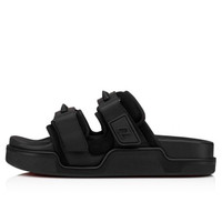 Set on a thick rubber sole, the Daddy Pool mule features audacious lines. With two straps that can be adjusted with Velcro, this Maison Christian Louboutin model is crafted in Gommato leather and neoprene. This black design is adorned with the signature tone-on-tone spikes and a CL monogram for an elegant finish. PRODUCT INFORMATION Reference: 3220320BK01 Color: BLACK Material: Rubber Collection: Fall Winter 22