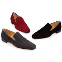 The Dandelion Flat is one of the Maison’s iconic slipper loafers. With its pure, clean lines, this versatile slip-on shoe is a must for contemporary dressing. The upper is meticulously crafted from the Maison’s proprietary veau velours in classic black. The silhouette is embellished with a grosgrain trim, while the sole is highlighted in signature red, offering a touch of luxury in inimitable Loubi style.