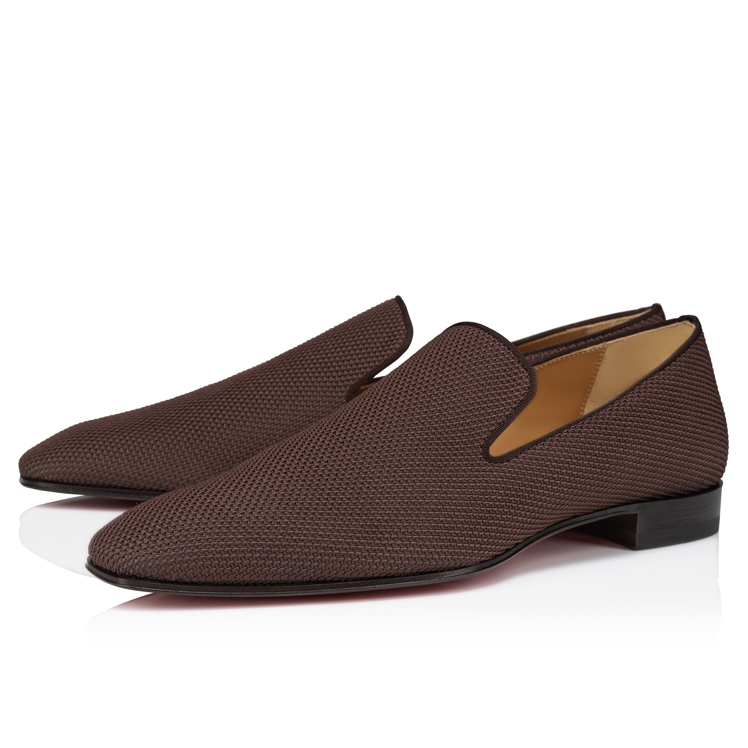 The relaxed allure of Maison Christian Louboutin's Dandelion loafers in Cosme brown is a pinnacle of sophistication crafted in Polo fabric with a smooth round toe for effortless comfort. The distinctive tissu polo design gives texture while a high tongue and descending vamp redefine the timeless elegance of this loafer that is ideal for any occasion. Product information Reference: 3240245C959 Color: Cosme Material: Polo fabric