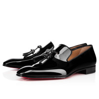 The Dandelion flat is a Maison Christian Louboutin iconic slip-on loafer with sleek elongated lines and a timeless appeal. An essential in any modern wardrobe, these loafers complement all trouser styles. The exquisite craftsmanship makes each pair a pleasure to wear. This model is fashioned in a soft black patent leather for an elegant appeal and finished with tone-on-tone grosgrain piping and an iconic crown-shaped tassel. Product information Material: Patent calf leather Color: Black Reference: 3150728BK01 Collection: Fall Winter 15