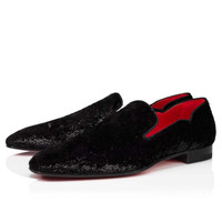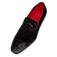 Showcasing sleek lines, the Dandy Chick loafer is a fine example of Maison Christian Louboutin's considerable expertise. It features V-shaped notches below the ankles and is crafted in black velvet lamé. Lined in iconic Loubi red, this model is outlined with a tonal grosgrain ribbon trim enhancing its urban appeal. PRODUCT INFORMATION Reference: 3221244J323 Color: BLACK/LIN LOUBI Material: Velvet Collection: Fall Winter 22