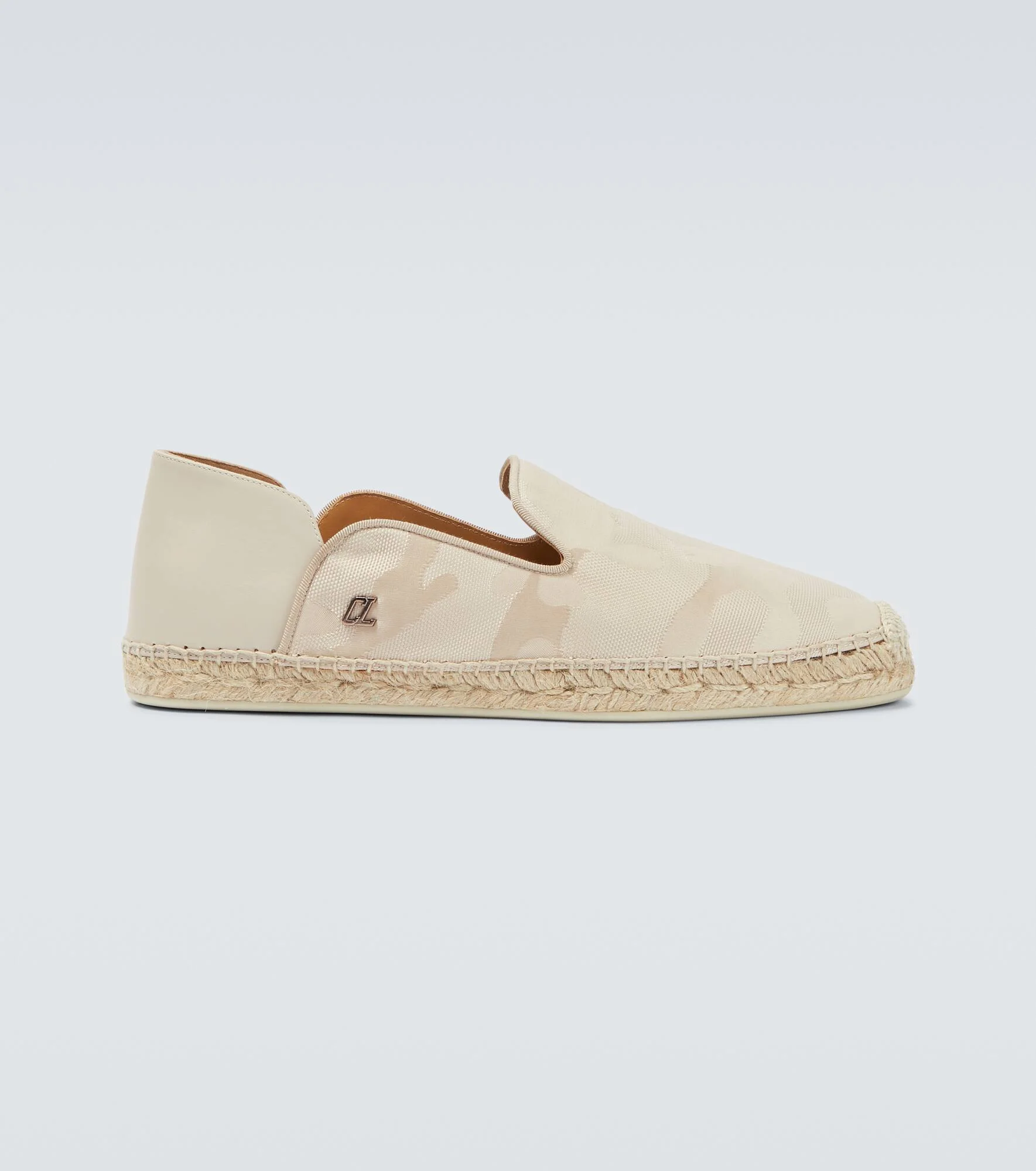 Get ready for warm weather with Christian Louboutin's Espadon espadrilles. Made from canvas with leather counters, they're finished with grosgrain trims and set on classic braided raffia soles. Product Details - Upper: fabric - Trim: cow leather - Toe shape: round toe - Sole: leather and jute insole, rubber sole - Designer color name: Desert - Made in Spain - Comes with dust bags - Comes with a box - Item number: P00680953 Size & Fit - True to size - Half sizes please take the next size up - European sizes