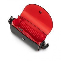 The urban Explorafunk wallet is adorned with Maison Christian Louboutin signature metallic spikes. It has an accordion construction and is crafted in textured black Empire calf leather. - An adjustable (31.4 to 57 inch/ 80 to 145 cm), detachable strap allows it to be carried over the shoulder, by hand or crossbody - Magnetic clasp, 2 flat pockets, 1 zipped pocket, 6 credit card slots - Dimensions: H 4.5 x L 7.3 x W 1.2 inches H 11.5 x L 18.5 x W 3 cm Product information Material: Calf leather Color: Black Reference: 3235191B329 Dimensions: 115mm x 185mm x 85mm