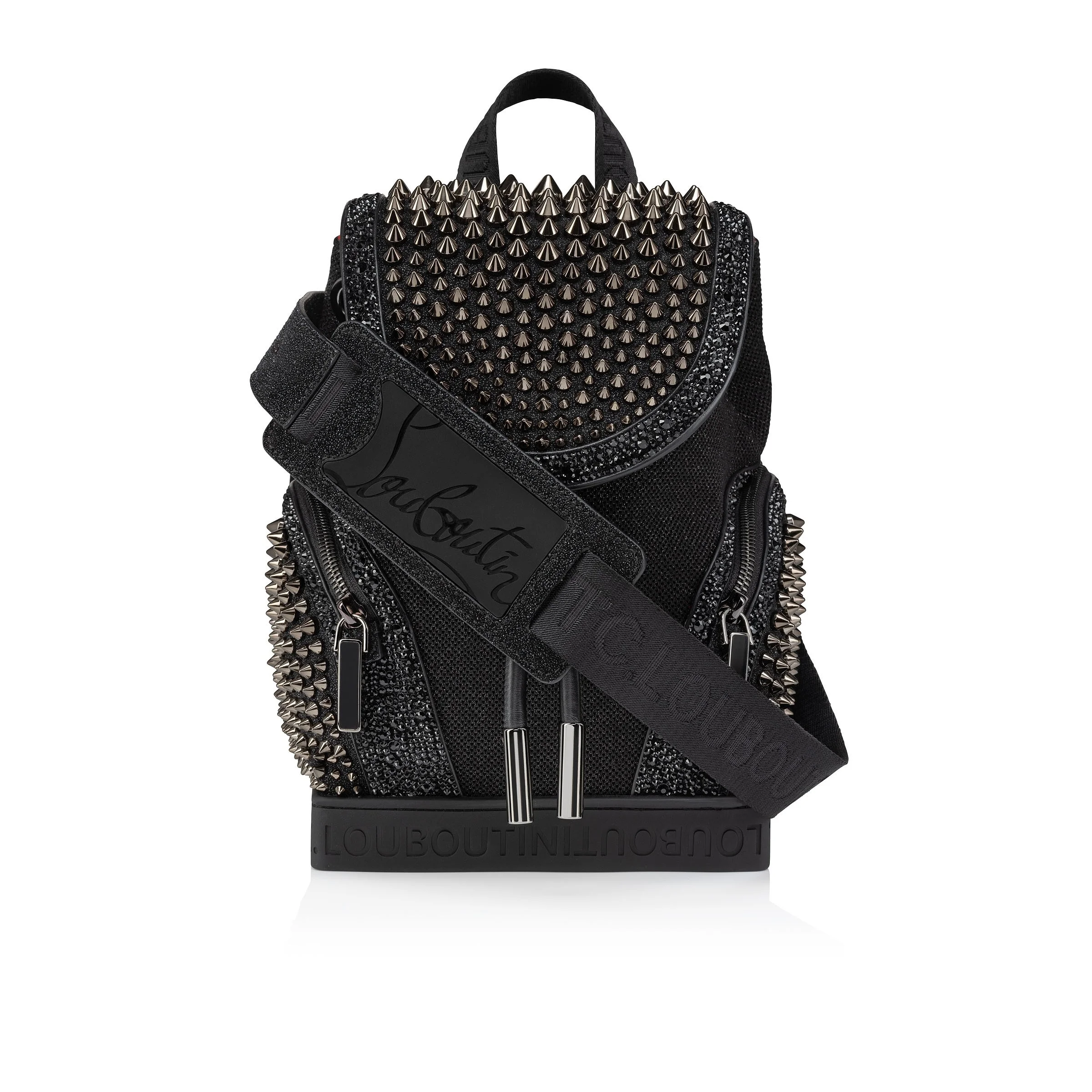 The urban Explorafunk backpack in size small features modern lines. This model in all-over black combines veau velours and sparkly suede and is adorned with a Maison Christian Louboutin signature and iconic matt black spikes. - 1 handle, drop 2.4 inch> - 2 backpack straps, 28.3 to 33 inch - 1 crossbody strap - Magnetic fastening - 1 interior zipped pocket - 2 outer zipped pockets - Dimensions: - H 10.2 x L 8.2 x W 3.9 inches Product information Reference: 3245091B754 Color: Black Material: Cotton Dimensions: 260mm x 210mm x 100mm