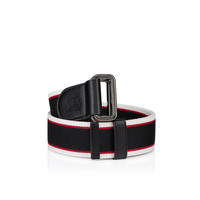 The urban F.A.V. men's belt is synonymous with Maison Christian Louboutin's iconic style. It combines smooth black calf leather and a three-color F.A.V. ribbon. This is a sophisticated accessory to enhance any look. - Adjustable length - Can also be worn knotted around the waist - Width: 4 cm/1.5 inches Product information Reference: 1245103M039 Color: Multicolor Material: Calf leather Collection: Summer 24