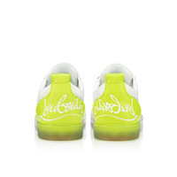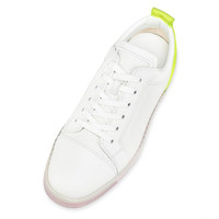 Taking its cue from the timeless low-top, the Fun Louis Junior deftly combines retro style with contemporary design elements. The upper is crafted from calf leather in brilliant Bianco white with a perforated finish. For a striking effect, the heel counter comes in fluo yellow with a white Louboutin signature logo, embellished with a grosgrain trim. For that inimitable touch of Maison Christian Louboutin flair, this version has a clear creeper sole. Product information Material: Calf leather Color: Yellow Reference: 1231146T969 Collection: Summer 23