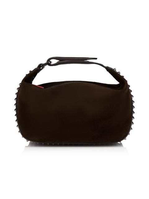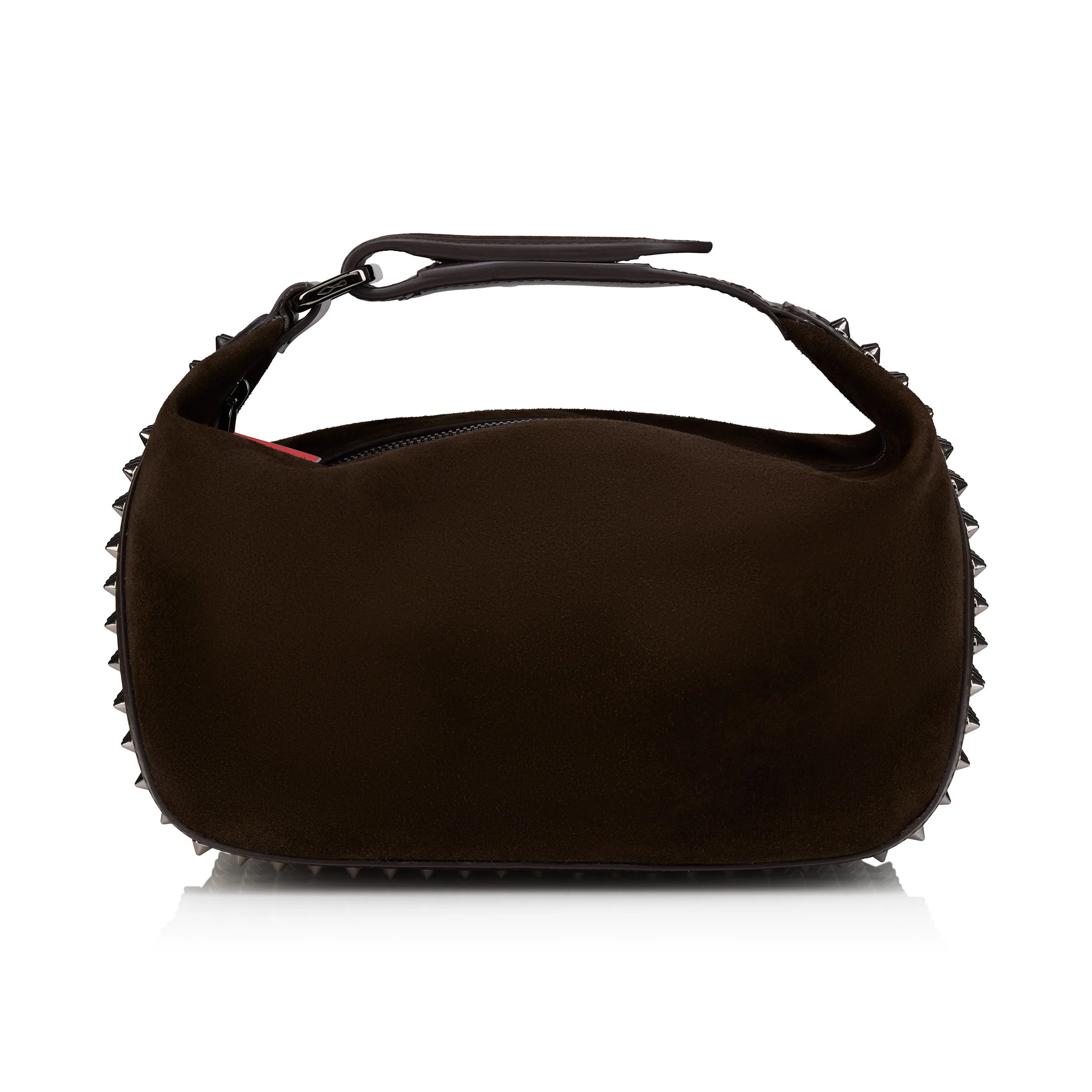 With its contemporary look, the Funky Dopp Pouch can be used as a bag for any occasion. Embellished with striking Maison Christian Louboutin gun metal grey spikes on the sides and the bottom and featuring a side handle with a velcro fastener for an easy carry and closing of the bag. This model is crafted in Cafe brown Crosta calf leather. - Zip fastening - 1 main compartment - Side handle 9 cm/3.5 inches H 6 x L 9.5 x W 5 inches H 15 x L 24 x W 13 cm Product information Reference: 32551897201 Color: Cafe Material: Reversed calf leather and spikes Dimensions: 150mm x 240mm x 130mm