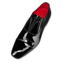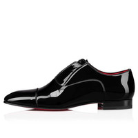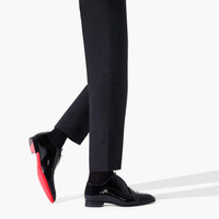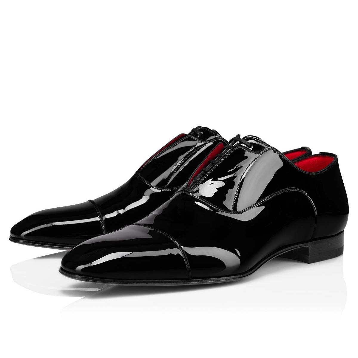 A new iteration of the Maison Christian Louboutin's Greggo lace-up, the Greghost reinvents this iconic Oxford shoe. Reworked for the modern era, the eyestay features a covered panel with a closed lacing system. Visible stitching adorns the vamp and toe cap, adding a luxurious feel. The upper is meticulously crafted from glossy black patent calfskin leather, for understated, impeccable styling. Product information Material: Patent calf leather Color: Black Reference: 3220214J323 Collection: Fall Winter 22