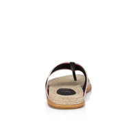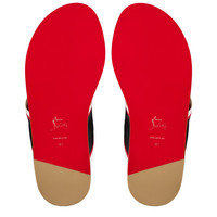 New for this season, the Hot Flip is an elegant slider featuring a thong strap. The upper is constructed from a single, tricolor grosgrain ribbon straps with the distinctive and signature ‘F.A.V’ sneaker label. An inimitable Maison Christian Louboutin style, this model combines a beige espadrille insole on a leather outsole. A leather logo patch on the insole completes the sophisticated look. Product information Material: Calf leather Color: Blue Reference: 1230973J487 Collection: Summer 23