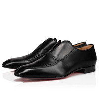 The slender silhouette of the Lafitte On showcases Maison Christian Louboutin's expertise. This black Oxford shoe is created using smooth calf leather. Set on a slim sole, this model is enhanced with tone-on-tone topstitching. It features a V-shaped notch by the tongue and delicate perforations for an elegant look. PRODUCT INFORMATION Reference: 3220342BK01 Color: BLACK Material: Calf Collection: Fall Winter 22