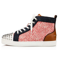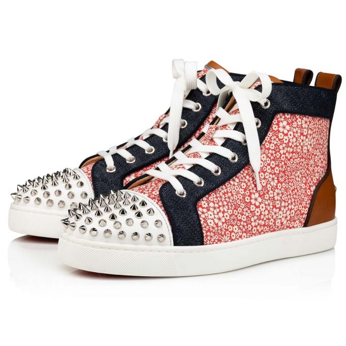 This season, the iconic Lou Spikes Orlato is reworked with a very modern twist. The quarters are crafted from Lin Sakura, a fresh linen with a white micro cherry blossom print on a red base, complimented with a denim eyestay, white suede toe box and calfskin leather heel counter in natural tan Cuoio. As with all Lou Spikes Orlato models, signature spikes embellish the toe cap while the trainer construction is accentuated with a grosgrain trim. PRODUCT INFORMATION Reference: 1221296CMA3 Color: VERSION MULTI Material: Calf Collection: Summer 22