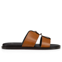 The Loubi Be sandal enchants with minimalist lines and an elegant summery appeal. This model features a padded sole and is crafted in smooth Cuoio brown leather. This is a modern accessory, embellished with a silver CL Maison Christian Louboutin monogram. Product information Material: Calf leather Color: Brown Reference: 3230324BG71 Collection: Fall Winter 23