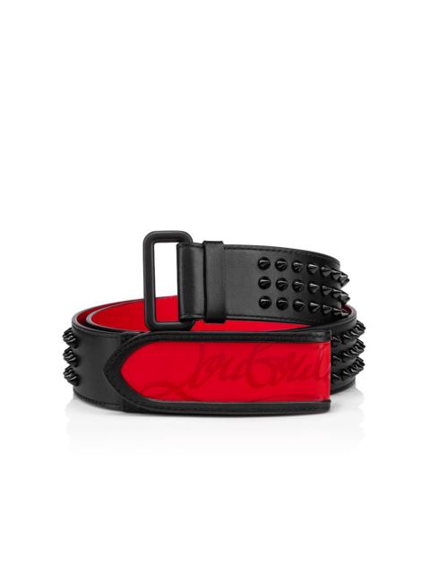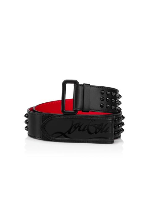 The Louis Belt embodies the codes of the Maison Christian Louboutin with this black leather model covered in black spikes. Its buckle slides through a gunmetal ring, highlighting modernity and giving a nod to the iconic red rubber sole. - Width: 40mm - Lined in Loubi red Product information Reference: 1205178B260 Color: Black Material: Calf leather Lining: Leather Collection: Summer 20