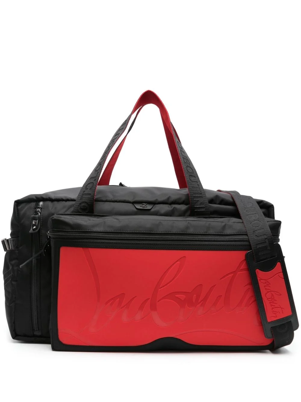 Loubideal duffle bag The Loubi red accents on Christian Louboutin's Loubideal duffle bag nod to the brand’s iconic lacquered soles. It’s crafted from black shell with myriad pockets and logo-jacquard straps that reinforce its functionality then fronted with a rubber panel debossed with the founder’s signature. Highlights - Black/red - Shell - Rubber panel - Adjustable detachable logo-jacquard shoulder strap - Two flat logo-jacquard top handles - Spike stud detailing - Debossed logo to the front - Adjustable logo-jacquard side straps - Front zip-fastening pouch pocket - Two side pouch pockets - Main compartment - Internal slip pocket - Internal logo patch - Gunmetal-tone hardware - Top zip fastening Made in Italy Composition Outer: Polyimide 100%, Rubber 100% SIZE & FIT Model measurements Height 6 ft 2 in(1.89 m) Bust/Chest 37.79 in(96 cm) Hips 37 in(94 cm) Waist 29.92 in(76 cm) Measurement DEPTH 9.84 in(25 cm) HANDLE 21.65 in(55 cm) HEIGHT 10.23 in(26 cm) STRAP 55.11 in(140 cm)