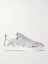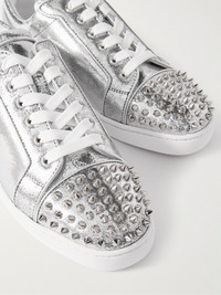 Louis Junior Spikes Metallic Cracked-Leather Sneakers Silver