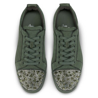 The Louis Junior P Pik Strass is inspired by basketball, blending sporty and elegant lines. This low-top sneaker in tennessee green is crafted in supple leather and suede. It features a heel tab and a grosgrain ribbon trim. A modern sneaker featuring Maison Christian Louboutin signature strass and spikes. Product information Reference: 3240082E700 Color: Tennessee Material: Veau velours