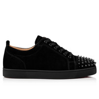 Taking inspiration from the tennis shoes of the 1980s, the Louis Junior Spikes Flat effortlessly blends retro chic with audacious modern elements. A master of reinvention, this sneaker takes on new textures and fabrics each season. This model features a classic look in all-over soft Black Veau Velours, for those days when only timeless style will do. Signature Black spikes adorn the toe. Product information Material: Veau velours Color: Black Reference: 1130575CM53 Collection: Fall Winter 15