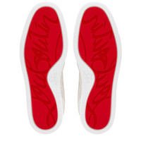 The Louis Junior pair of low-top sneakers in natural is designed to portray Maison Christian Louboutin's flair for the outspoken. Crafted from veau velours and Damier linen, the combination of textures is enhanced by the signature spikes on the rounded toe. Set on a white rubber sole with a heel tab for easy slipping on and off, the Loubi red sole confirms CL's iconic style. Product information Reference: 3240303BG3J Color: Natural Material: Veau velours Collection: Fall Winter 24